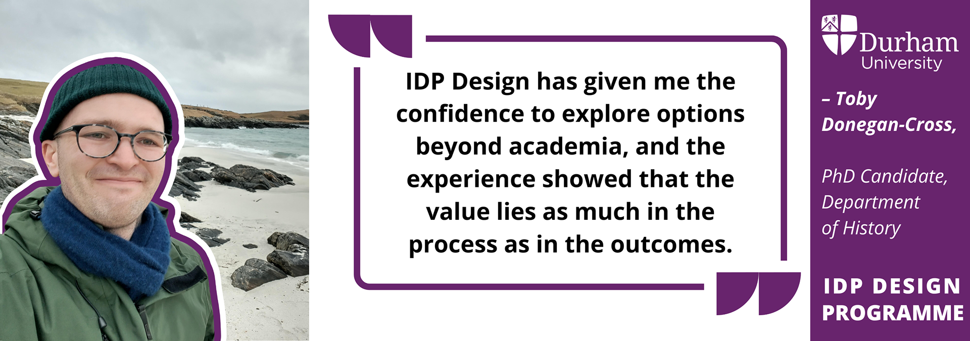 design content for Durham University IDP Design mentoring program, intended for distribution in student newsletters, on the website, and on LinkedIn; Illustrator & Canva